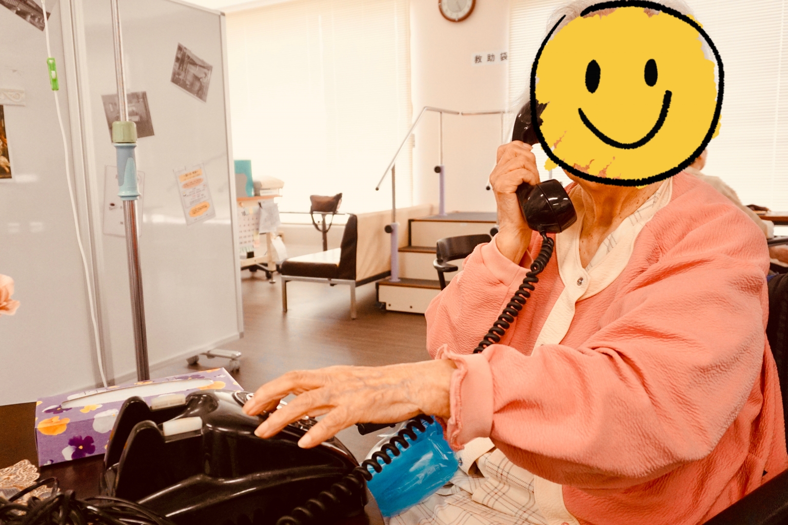 こちらは、黒電話を片手にパシャリ📸慣れたようにダイヤルを回されています。