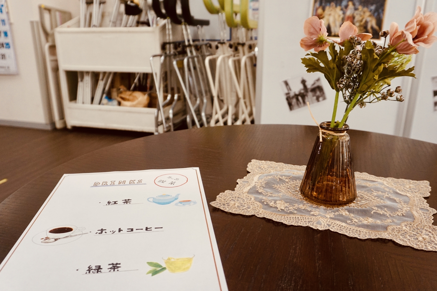 普段は普通のリハビリテーション室ですが、喫茶店を思い出させる空間へ変わっていました。