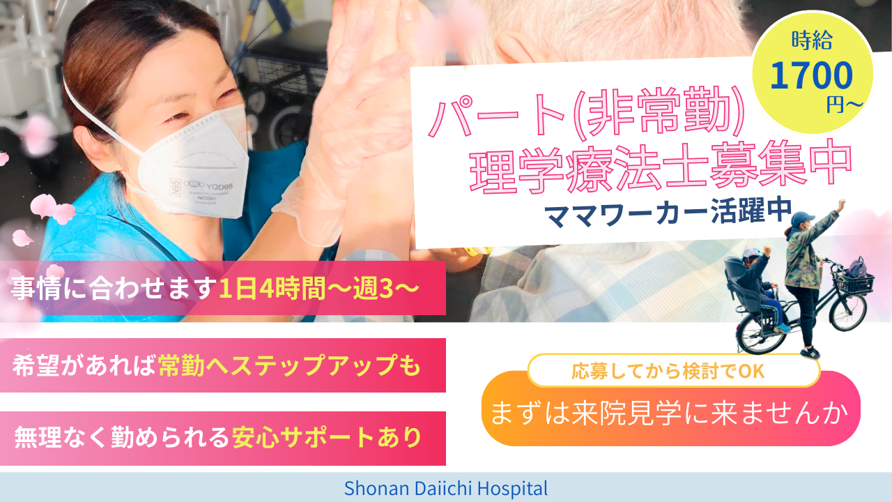 将来的に常勤へ切り替えるなど、ライフステージに応じて、理学療法士として働き続けられる環境です。
